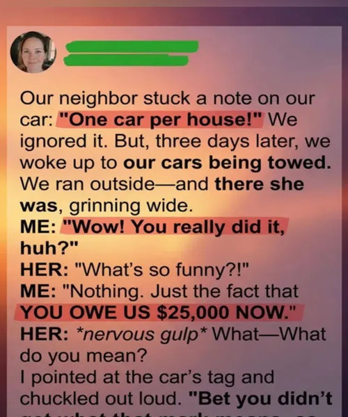 The next day, officials from the community management office arrived. They spoke with Lindsey, the tow company, and us, trying to untangle how a simple guideline had ballooned into a pile of violations and fees. They explained—in surprisingly diplomatic tones—that calling for the removal of vehicles without confirming ownership or context didn’t just create frustration.