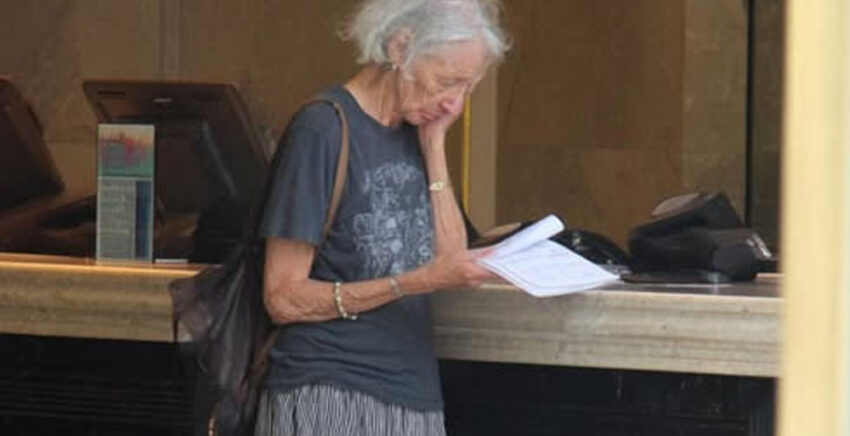 Grandma stood near a tall palm, small under the high ceilings. Her light cardigan was buttoned wrong, while her purse was slipping from her shoulder. In her trembling hands, she clutched a stack of papers and crumpled receipts.