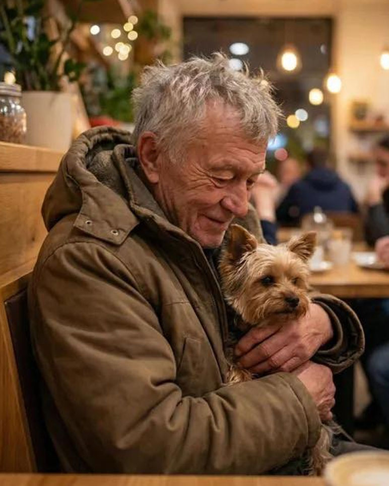 Then the bell over the door rang. An elderly man stepped inside, unsure and hesitant, leaning on a cane with a tiny dog trotting beside him. He asked for the cheapest item on the menu, careful and polite, already counting what little he had. Something in Laura softened.