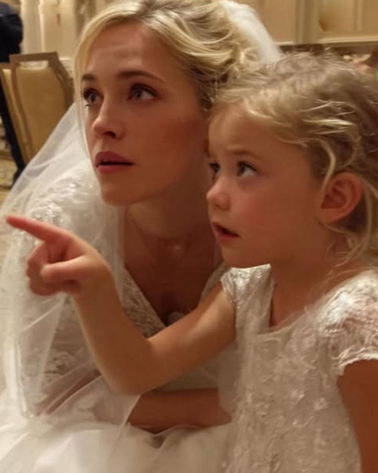 After the ceremony, I was mingling with guests, laughing with old friends and accepting compliments on the décor, the flowers, and the food. I had just taken a sip of champagne when I felt a small tug at the hem of my dress.