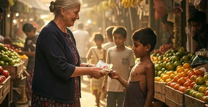 A nearby vendor noticed their exchange. “That’s Kofi,” he explained. “No parents. Sleeps behind the temple. Works when he can.” Margaret was stunned. “Works? At his age?” The vendor shrugged. “Better than begging. He’s a good boy.”