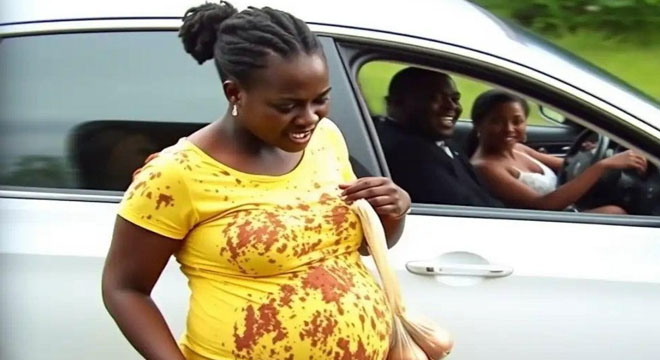 Before she could react, icy, filthy water crashed into her body, knocking the breath from her chest. In seconds, her pale blouse was soaked and stained a deep brown, spreading across her five-month-pregnant belly — the very place where a life was growing, a life doctors once told her would never exist.