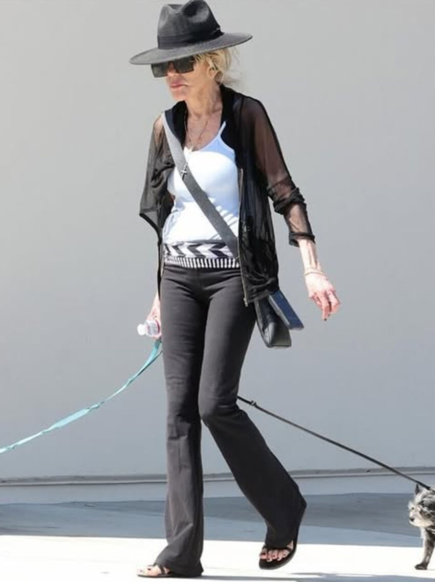 At 88 years old, she dressed casually yet elegantly in a white summer blouse, black flared leggings, a black fedora, and simple sandals. The photos captured not only her style but her quiet confidence and enduring charm, a testament to a life lived fully and authentically.