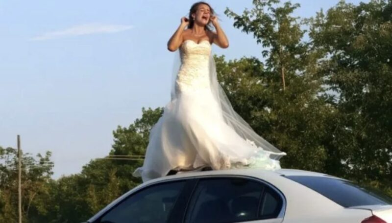 I WALKED OUT ONE MORNING AND SAW A WOMAN IN A WEDDING DRESS ON THE ROOF OF MY HUSBAND’S CAR.’