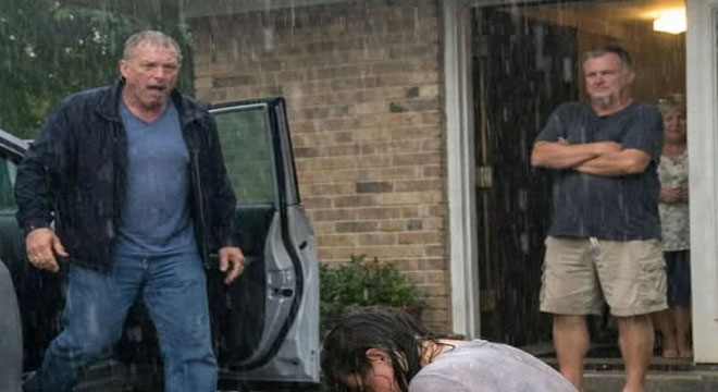 “Dad, please,” she whispered, her voice barely audible over the patter of the rain. “Please go. I’m fine. Just go.”
