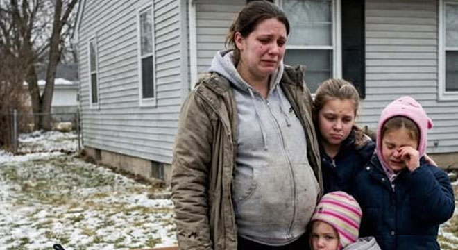 Three little girls crying around me. Our life stuffed into trash bags.