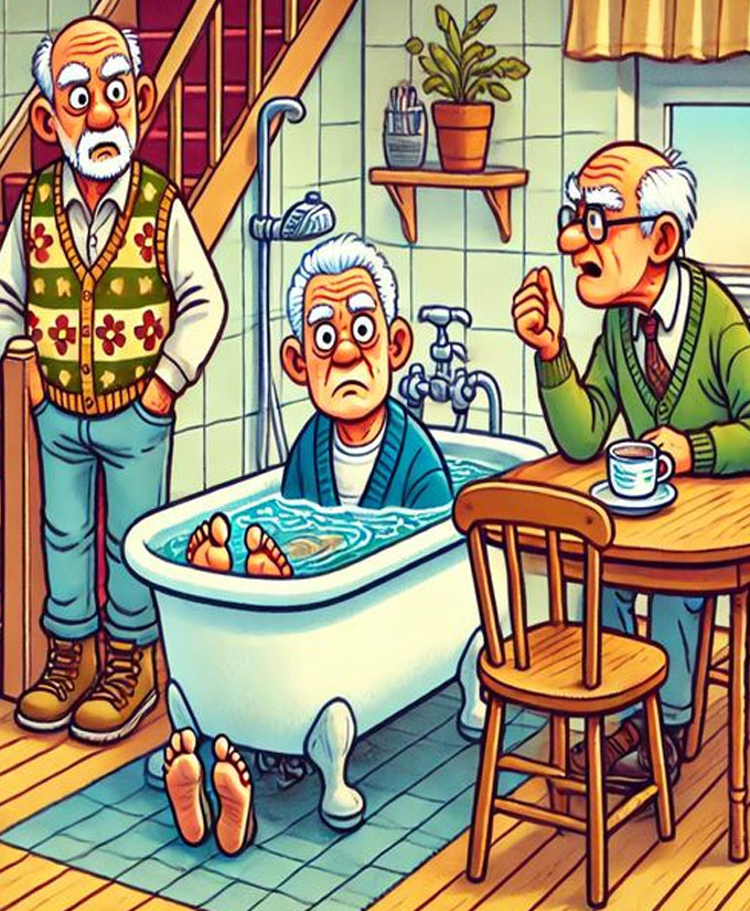 One quiet evening, as the house settled into its usual nighttime calm, the eldest brother, at 96, decided it was time for a bath. He turned on the water, waited patiently as the tub filled, and then carefully placed one foot inside. He paused. His brow furrowed. Something wasn’t adding up.