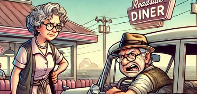 While on a road trip, an elderly couple decided to stop at a roadside diner for lunch.