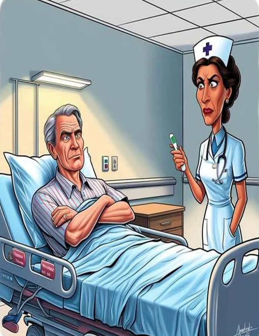 Once the thermometer was inserted, the nurse smirked. “I need to get something. You stay JUST LIKE THAT until I get back!”