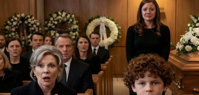 At my husband’s funeral, his mother fixed her eyes on me and said with chilling calm, “It’s better he’s gone than forced to live with the shame she caused him.” A few relatives murmured in agreement, some even nodding. Before I could find my voice, my eight-year-old son stood up, clutching his father’s phone tightly. “Grandma,” he said evenly, “do you want me to play the message Dad recorded about you last week?” Her face drained of color as the room dropped into complete silence.