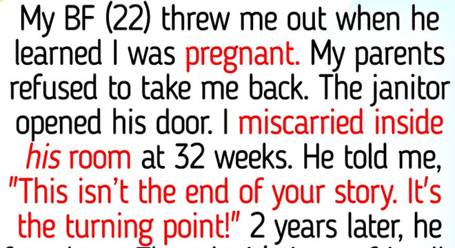 My boyfriend (22) threw me out when he learned I was pregnant. My parents refused to take me back. The janitor opened his door. I miscarried inside his room at 32 weeks. He held me and said, “This isn’t the end of your story. It’s the turning point!”