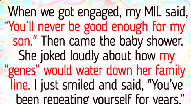 “Then came the baby shower. Balloons, gifts, family everywhere. And right on cue, she struck again — this time joking loudly about how my ‘genes’ would water down her family line. Something clicked. I didn’t raise my voice. I didn’t insult her. I just smiled and said, ‘That’s interesting. You said almost the same thing at our wedding — when you told me I’d never be good enough for your son. You’ve been repeating yourself for years.’