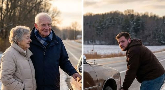 They were huddled beside a battered, silver sedan that had been swallowed by the shoulder of the road. Even from a distance, I could see the vehicle was leaning heavily on its front passenger side—a flat tire that looked more like a shredded ribbon of rubber. An elderly couple stood there, their silhouettes frail against the backdrop of the swirling storm. They were wearing thin, dressy wool coats that offered no real protection against the sub-zero temperatures. I almost kept driving. Dozens of cars had already passed them by, their drivers undoubtedly thinking exactly what I was: someone else will stop; the police will be along eventually; I have a child in the car.