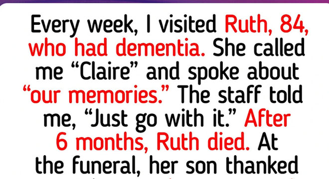 Every week I volunteered at a care home and spent time with Ruth, who was 84 and had pretty advanced dementia. She always called me “Claire” and talked about “our memories” like we’d known each other forever. I corrected her once, and the staff were like, “Yeah… don’t do that. Just go with it.” So I did.