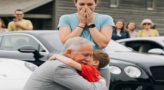 But one quiet afternoon, everything shifted. Three polished black cars rolled to a stop outside my worn-out house, and a distinguished older man stepped out. Before I could gather my breath, he lowered himself to his knees on the dusty ground and said, with a trembling voice, “I’ve finally found my grandson.”