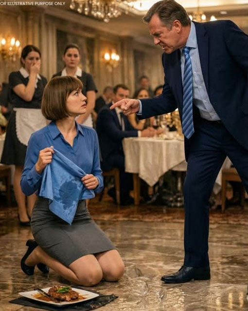 The Wagyu steak lay on the ground, its red reduction spreading across the white marble like a stain no one wanted to acknowledge. The shattered plate glittered under the chandelier light.