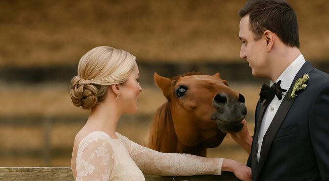My fiancé didn’t mind the idea — on the contrary, he said photos with the horse would be unique and romantic. Everything was going perfectly: a soft breeze, the morning light, the photographer giving directions. But as soon as we approached the fence and stood next to the horse, she suddenly began to neigh loudly, stomp her hooves, toss her head, and even push my fiancé in the chest with her muzzle.