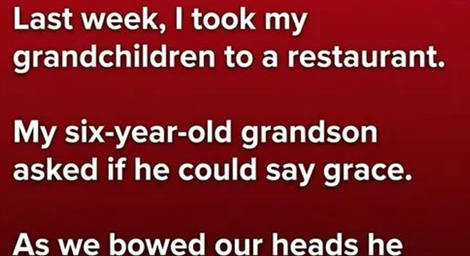 Last week, I took my grandchildren out for dinner, expecting nothing more than a peaceful evening together. The restaurant was warm and inviting, filled with soft conversations and the gentle clatter of dishes. As we waited for our food, my six-year-old grandson looked up at me and politely asked if he could say grace. I smiled and nodded, and our table grew still. He folded his hands, bowed his head, and offered a simple, heartfelt prayer—thanking God for the meal, for our time together, and even adding a small, hopeful mention of dessert. It was sincere and innocent, the kind of moment that reminds you how naturally children express gratitude.