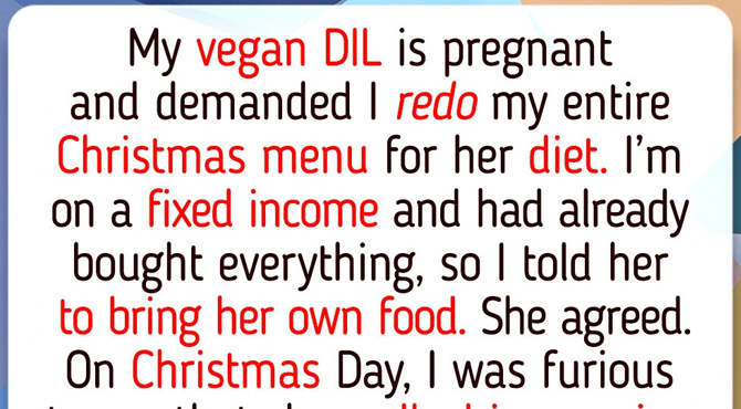 My pregnant vegan DIL, Emily, called me two weeks before Christmas and said I needed to redo my entire menu to fit her diet. No turkey, no ham, no butter, no eggs, no cheese (basically cancel everything I’d already bought and start from scratch). I gently explained that I had already paid for the groceries, and I simply couldn’t afford to change everything. I told her she was welcome to bring her own vegan food. She said “fine,” in that familiar tone that means nothing is fine.