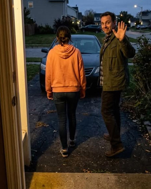 At first, it looked ordinary, just the dull wash of streetlights sliding across the windshield, a near-empty road, and Mike’s arm moving slightly as he adjusted the wheel.