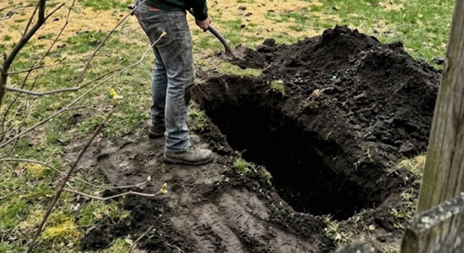 Rob was standing there next to a wide, freshly dug hole, shoveling dirt back in. He was fast and focused. Like he needed it covered and gone.