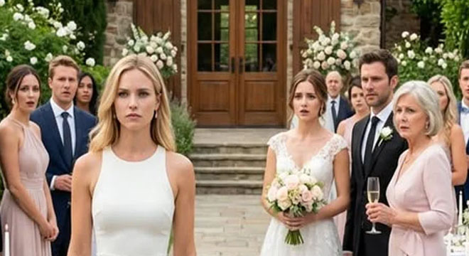 Chloe stood frozen, her bouquet clutched so tightly her knuckles had gone pale.