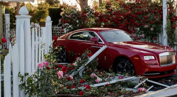 My fence, a structure older than most of the homes on this street, lay in shambles! Splintered planks were strewn across the lawn, some jammed into the bushes. And lodged squarely into the wreckage was a gleaming red Rolls-Royce, its rear end still partly inside my yard.